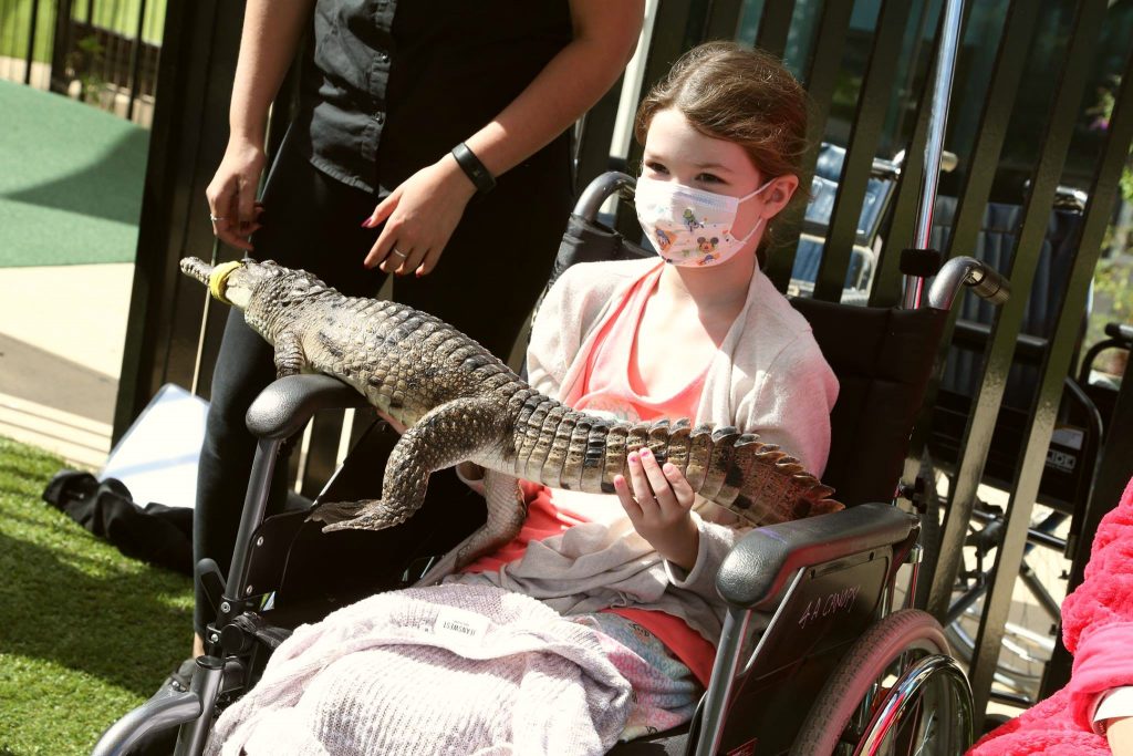 Patients were able to pat and hold a variety of native Australian animals, including a cuddly koala, possums, lizards, snakes, turtles, frogs and even a baby crocodile!