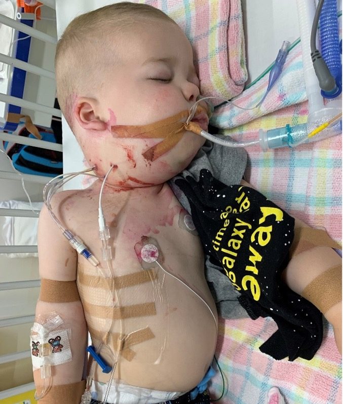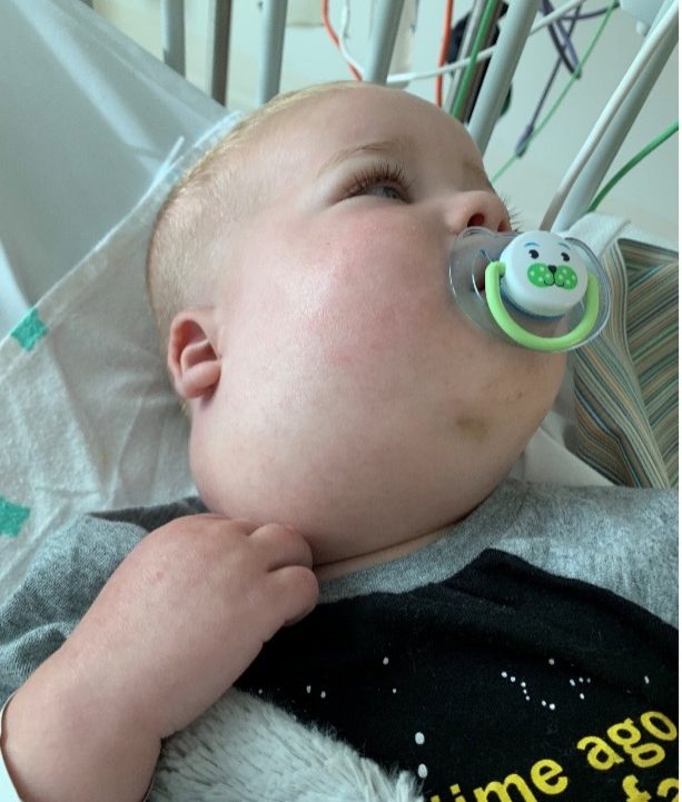 Charlie presented with a congenital large cystic lump of the left side of his face. This was secondary to a congenital lymphatic malformation.
