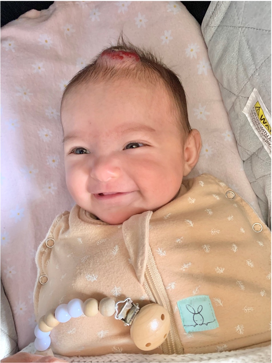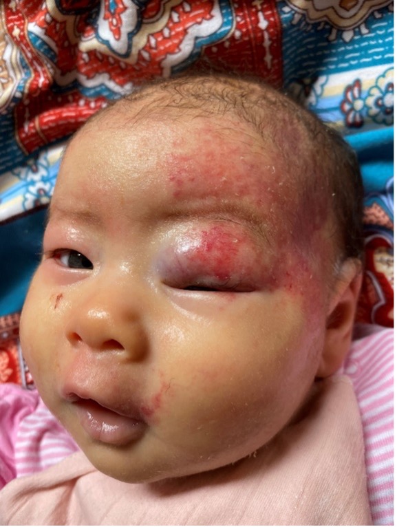 Luna developed an infantile haemangioma in the first few days of life that grew rapidly; it involved her left eyelid and within 4 weeks her eyelid had completely closed, affecting her vision. If not treated promptly, the haemangioma would have caused permanent vision impairment.