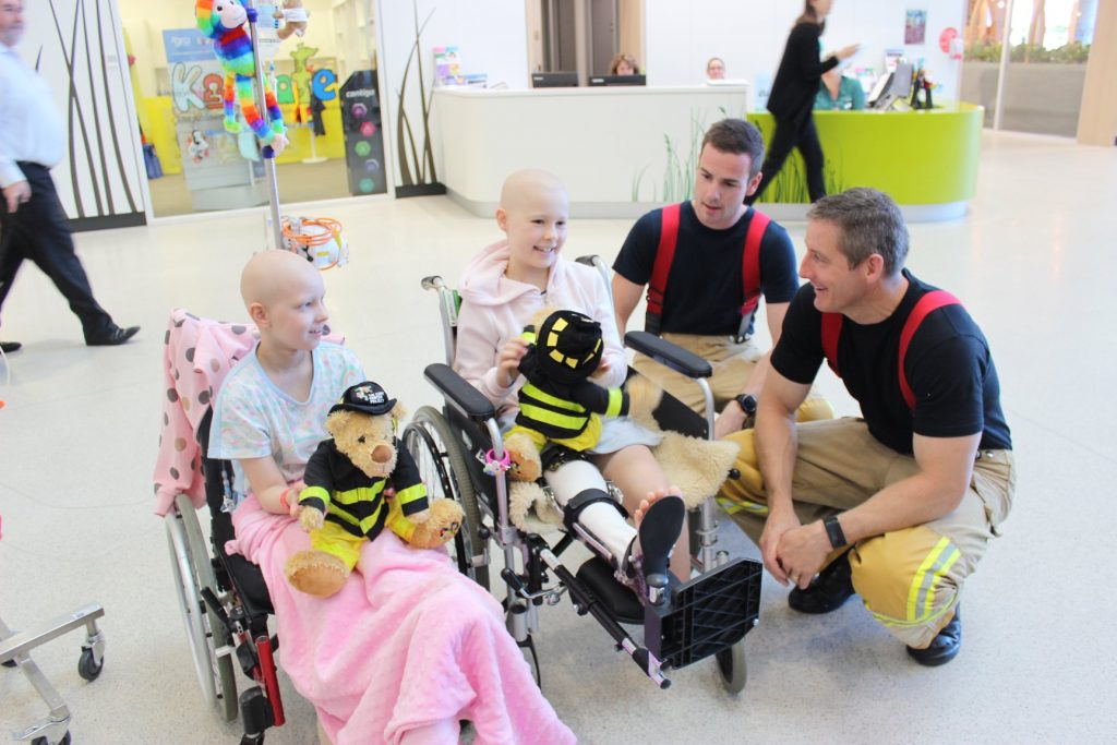Pictured: Patients Abbey and Georgia meeting a couple of our firefighter heroes.
